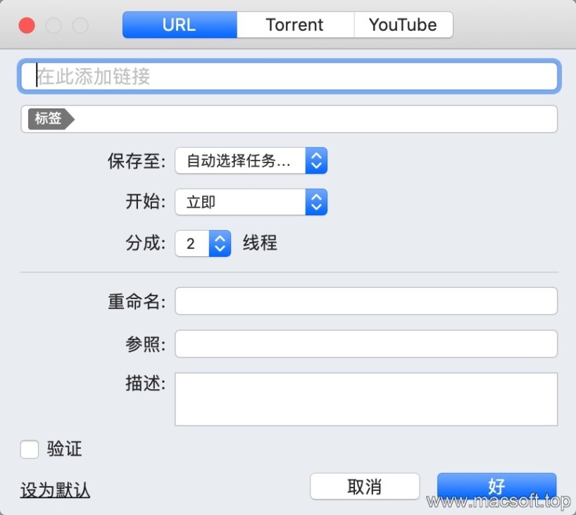 Mac上公认的最好的下载工具!最方便的地方在于无缝支持 Mac 上所有主流浏览器 (Safari, Opera, Firefox, Chrome),点击下载连接后可以自动接管下载。